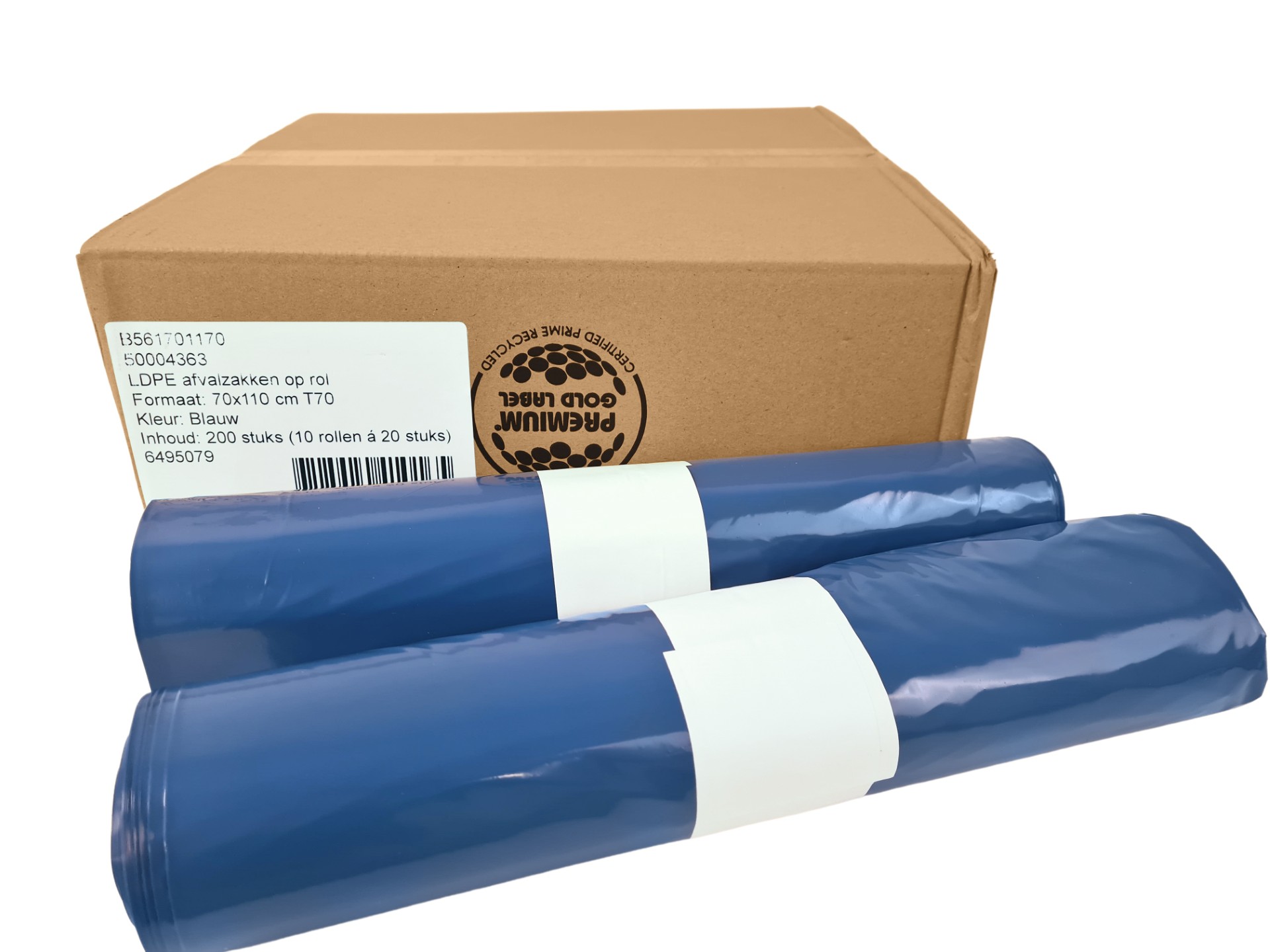 Afvalzak LDPE 70x110 cm T70 blauw (10 rollen - 20 op rol - 200 zakken)