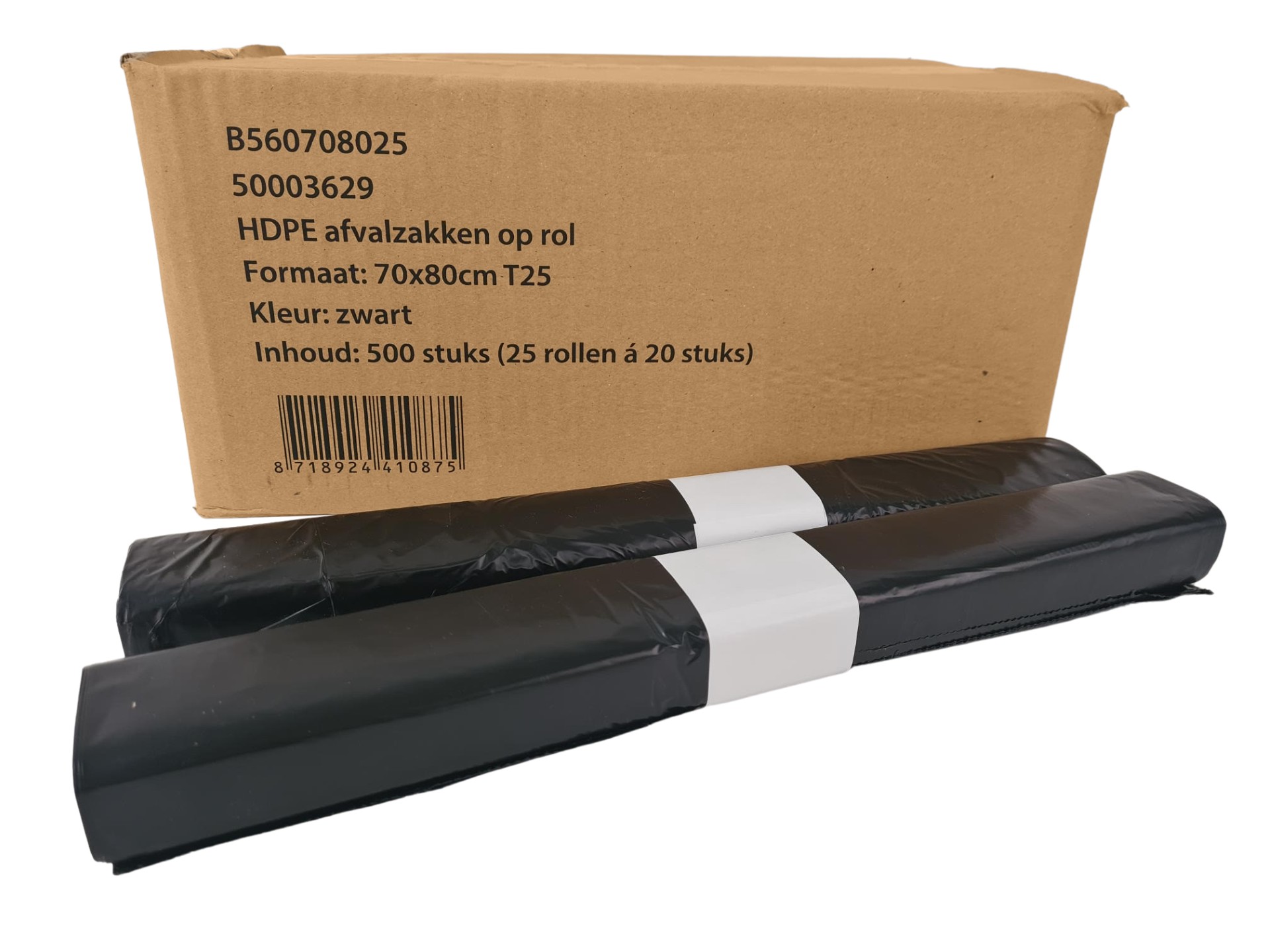 Afvalzak HDPE 70x110 cm T25 transparant (25 rollen - 20 op rol - 500 zakken)